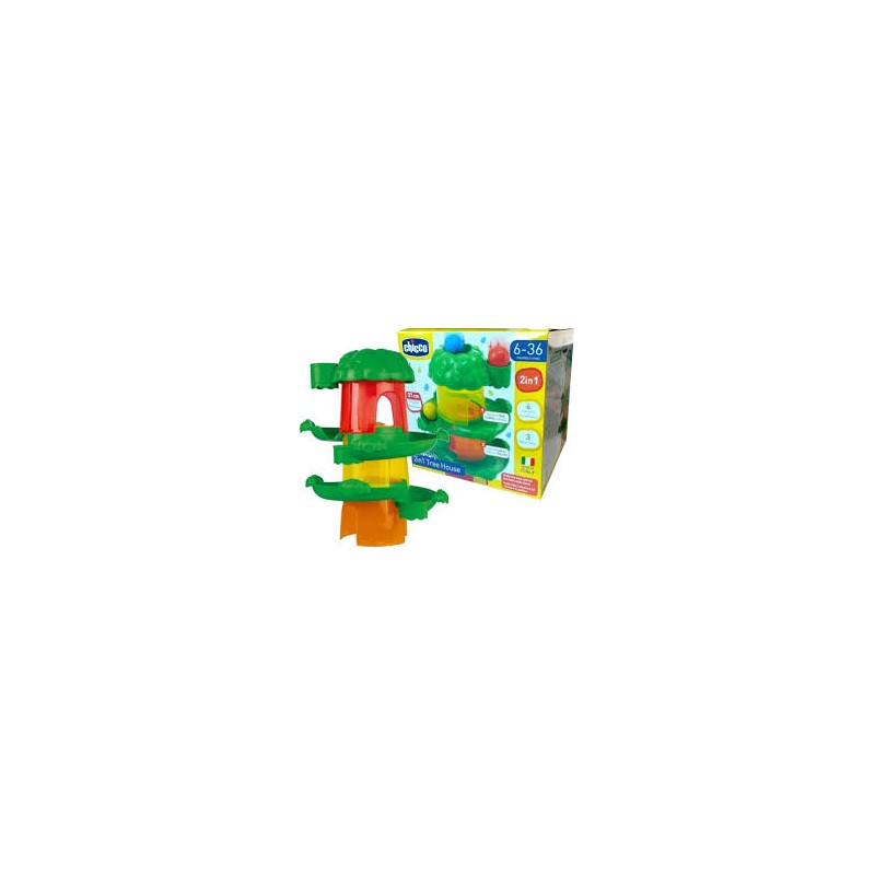 Giocattolo impilabile 2 in 1 per un divertimento senza fine! Impila tutti i pezzi dell'albero nell'ordine corretto per costruire la tua casa sull'albero da 37 cm e poi lascia cadere le 3 palline! Quale strada prenderanno? Scoprilo!