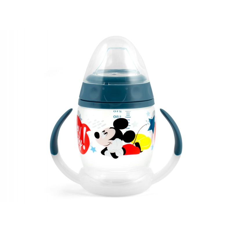 La tazza primi sorsi è studiata per aiutare il bambino nel passaggio graduale al bicchiere, i manici sono ideati appositamente per le piccole mani del bimbo, beccuccio morbido in silicone, ml 210.Adatta a bambini di età superiore ai 6 mesi
